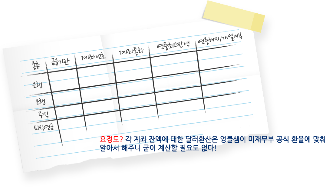 어느 금융기관인지, 계좌번호가 뭔지만 적어놓고 엉클샘에 맡긴다.