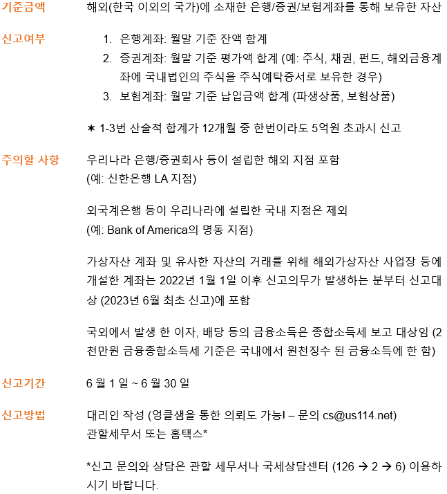 이번 글에서는 한국의 금융계좌신고 제도를 안내해드리려고 합니다.